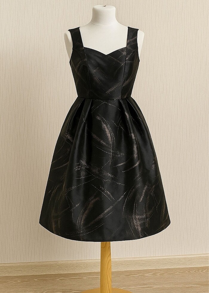 Siyah Desenli Astarlı Tafta Abiye Elbise Mezuniyet Elbisesi Sıfırdır hiç kullanılmadı Arkadan fermuarlı S.M beden uyumlu Ölçülerine bakarak alınız lütfen Elbise boyu: 87 cm Bel:32 cm (tek,ön taraf ölçü ) Göğüs:37 cm