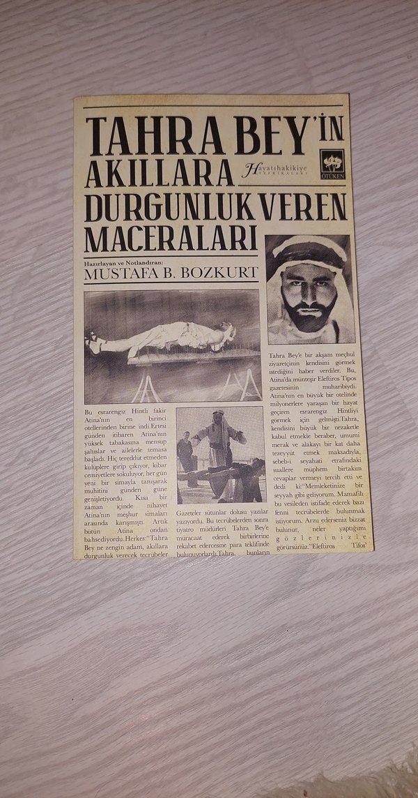 Mustafa B. Bozkurt tarafından hazırlanmış, Tahrabey'in akıllara durgunluk veren maceralarını içeren dergi sayfası. Maceralar ve görseller yer alıyor.