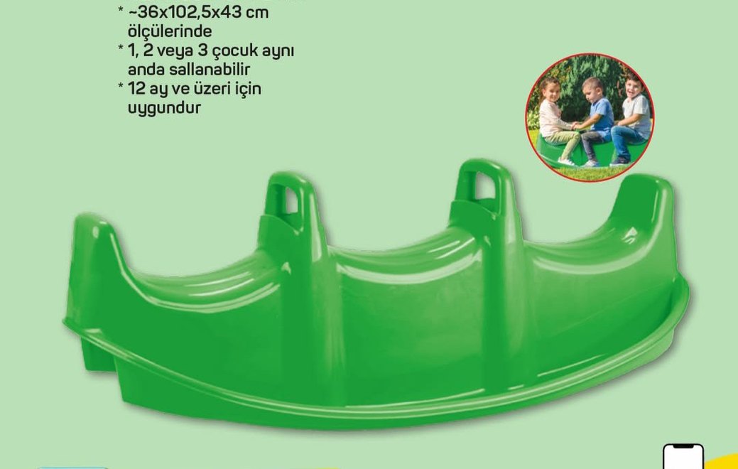 Parlak yeşil renkte, 3 çocuk için tasarlanmış su oyuncağı. Yaklaşık30x102 5x43 cm ölçülerindedir, su aktiviteleri için uygundur.