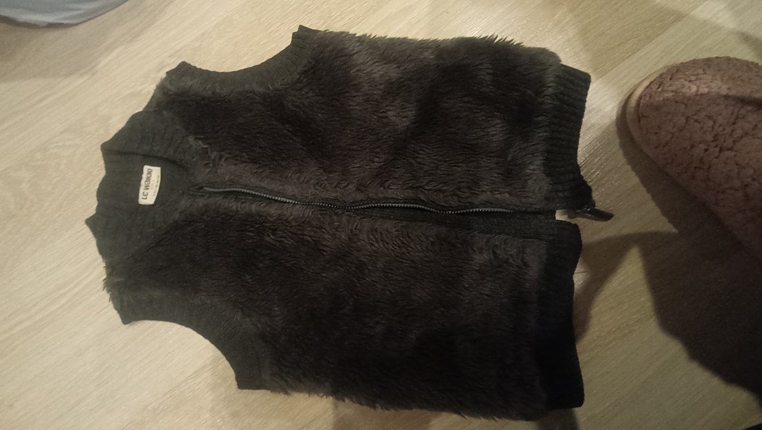 Kürklü detaylı, V yakalı siyah cocuk yeleği. Yumuşak ve sıcak kumaştan, kolsuz ve günlük kullanıma uygun.