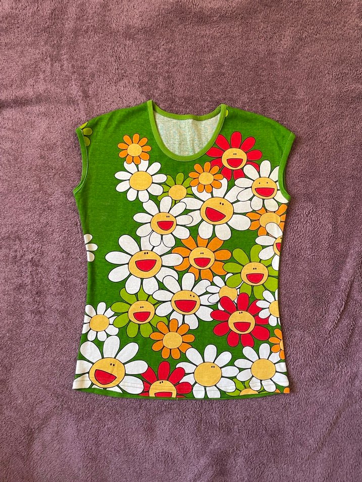 Takashi murakami’nin smiling flower desenine benzer bir deseni var. Fitted bir kalıbı var. Pamuklu kumaş. Ufak bir lekesi vart fotoğrafta gösterdim. Ölçüleri bel:38 uzunluk:59 cm.