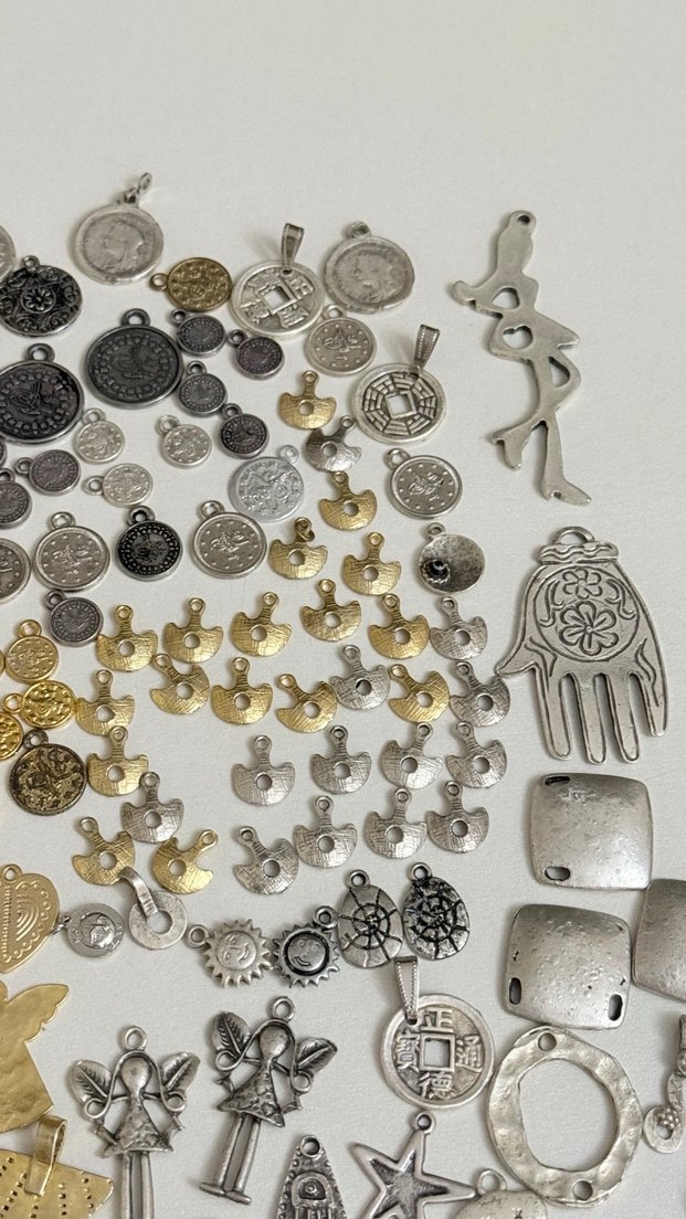 Takı malzemeleri hiç kullanılmamış hepsi sıfır ara malzeme tespih PÜSKÜL süs leri için kulanılır kaleye kelepçeleri tamamı bana yarar kullanırım diyene