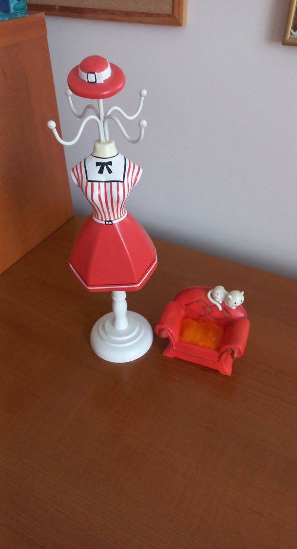 Canlı turuncu renkte english home takı askısı ve vintage biblo minyatür koltuk, ben iğneliğe çevirmiştim, dileyen söküp başka bir şey yapabilir. takı askılığını da sabitlemeye çalıştım ama hafif oynuyor son resimde belirttim, 30 cm den çok az uzun