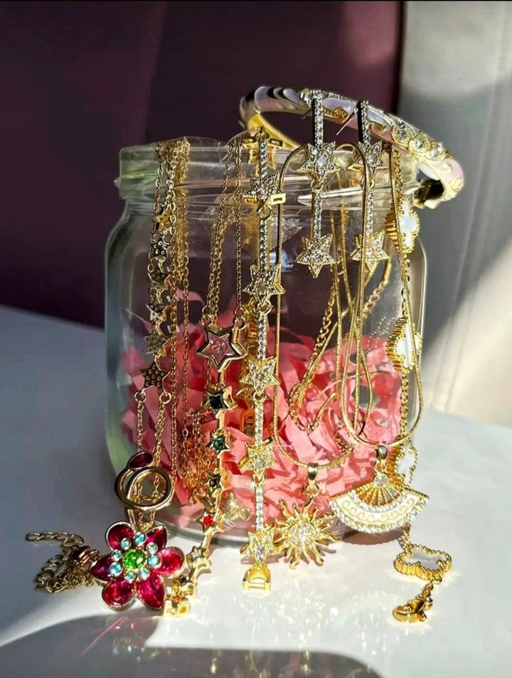 Bu kavanozumuzda 12 adet takı bulunmaktadır hepsi yeni ve etiketlidir. gold silver veya karışık olarak kişiye özel hazırlanmaktadır. hepsi yeni trend ürünlerdir. kaliteli takılar uygun fiyata keyifli alışverişler diliyorum✨️