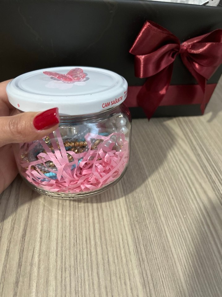 Takı kavanozu orta boy hepsi elişi ürünüdür 3adet kolye 4 adet bileklik
