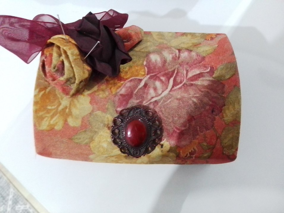 tek gözlü aynalı takı kutusu aynasında çatlak var onun dışında bir sorunu yok üstündeki gül iğnelik olarak da kullanılabiliyor.
