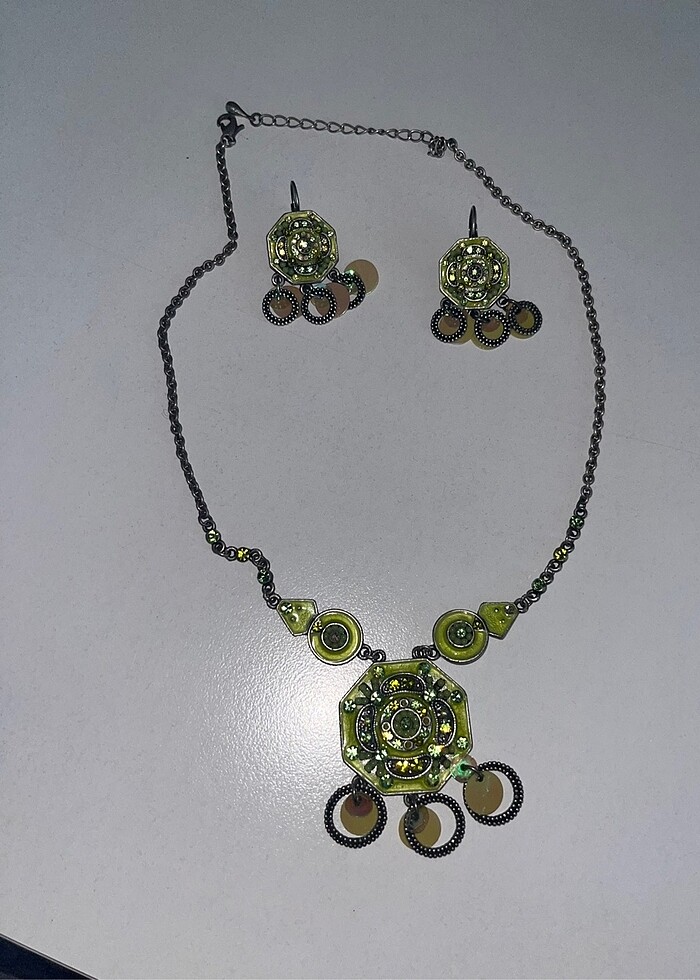 Kolye küpe seti yeşil 1 defa kullanıldı