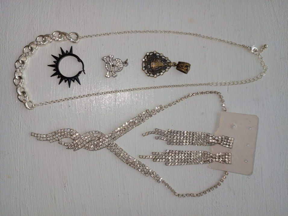Kadınlar için parlak payetli ve işlemeli detaylara sahip vintage ve avangart tarzda takı seti. Günlük kullanım için uygun. ✨ tümü satılıktır.