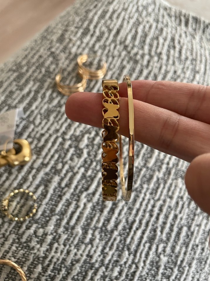Kelebek detaylı kelepçeli bileklik Üç adet küpe Bir kaç defa kullanılmıştır
