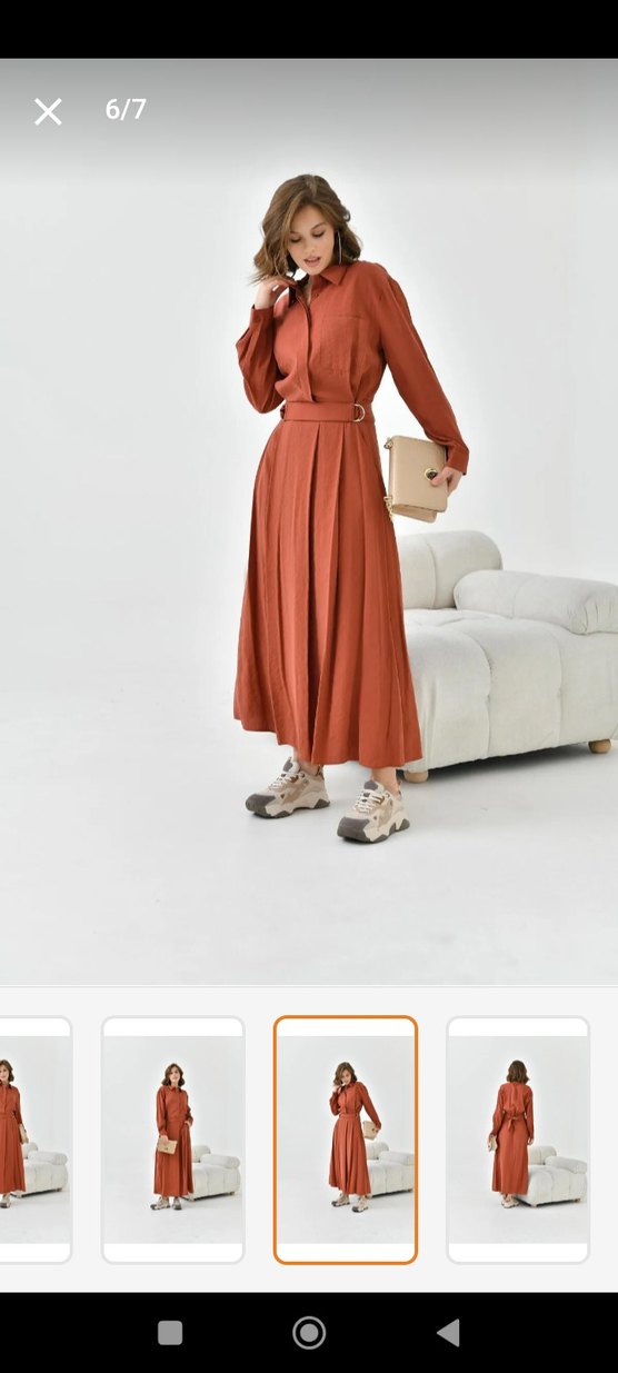 uzun etek gömlek takım viskoz kumaş kiremit renk etek cepli gömlek bombır model