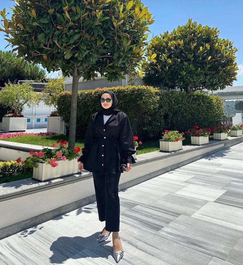 Siyah, uzun kollu, kesik yakalı, regular fit ve uzun boy kadın takımı. Sentetik kumaştan üretilmiş, desen içermeyen, günlük kullanıma uygun sade ve şık tasarım.