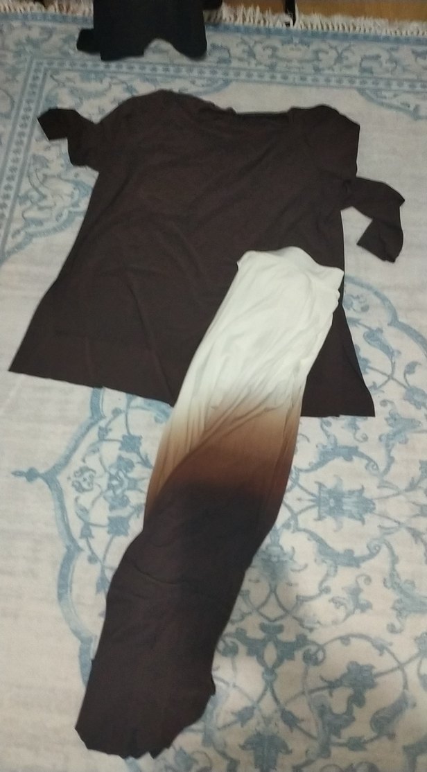 Uzun kollu, drapeli ve bağcıklı hamile tunik, koyu kahverengi batik desene sahip. İpek gibi kumaşıyla günlük şık ve rahat bir görünüm sunar. sandy takım hiç giyilmedi