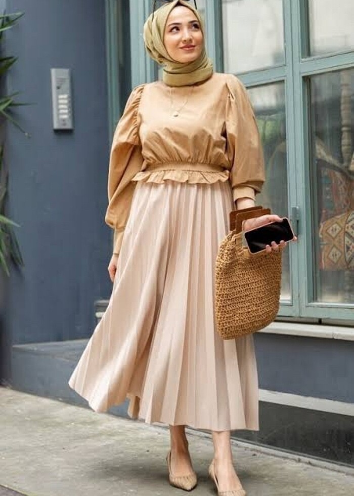 Yeni camel rengi etekli takım m ve xl bedeni mevcuttur
