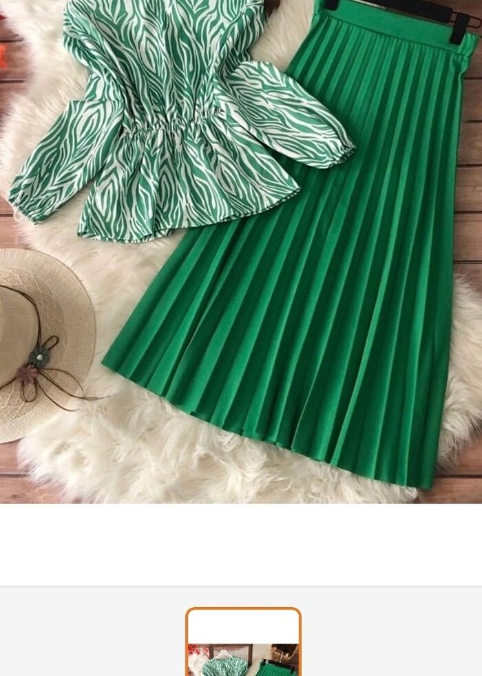 Görselde görüldüğü gibi bir saat giyildi hiç bir kusur deforme yok sıfır ürün etek bluz takım
