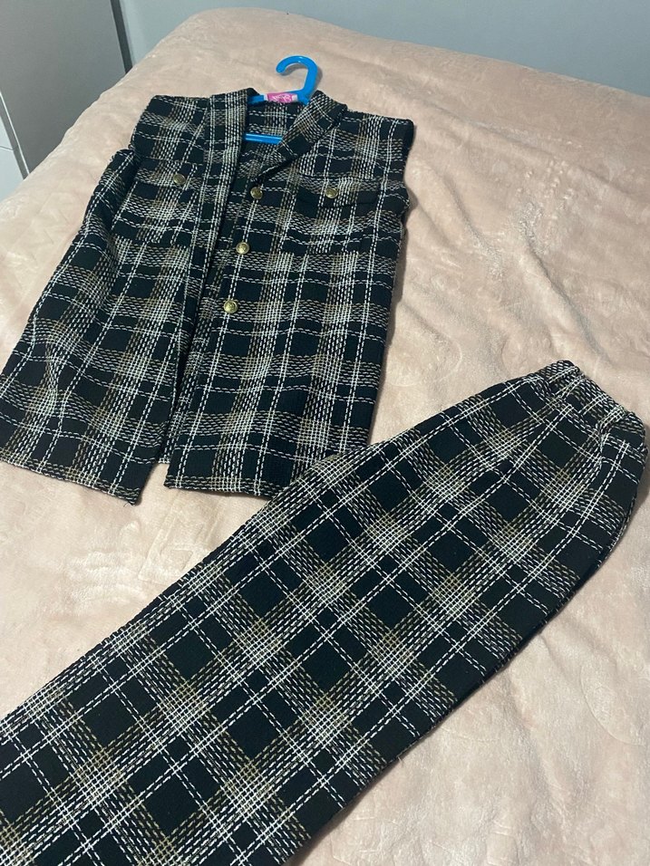 düğmeli kolsuz üst ve uzun pantolondan oluşan rahat günşük takım