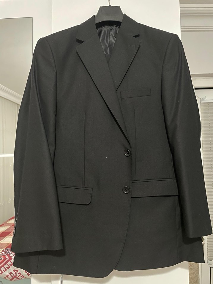 Takım elbise siyah renk Pantolon :regular kalıp 56 beden kumaşı polyester viskon karışımı Yelek: siyah renk 56 beden Ceket: 56 beden