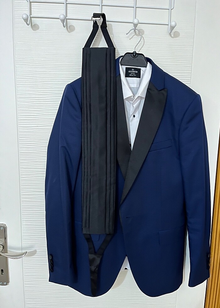 Ceket gömlek yelek ve kemer lacivert takım elbise