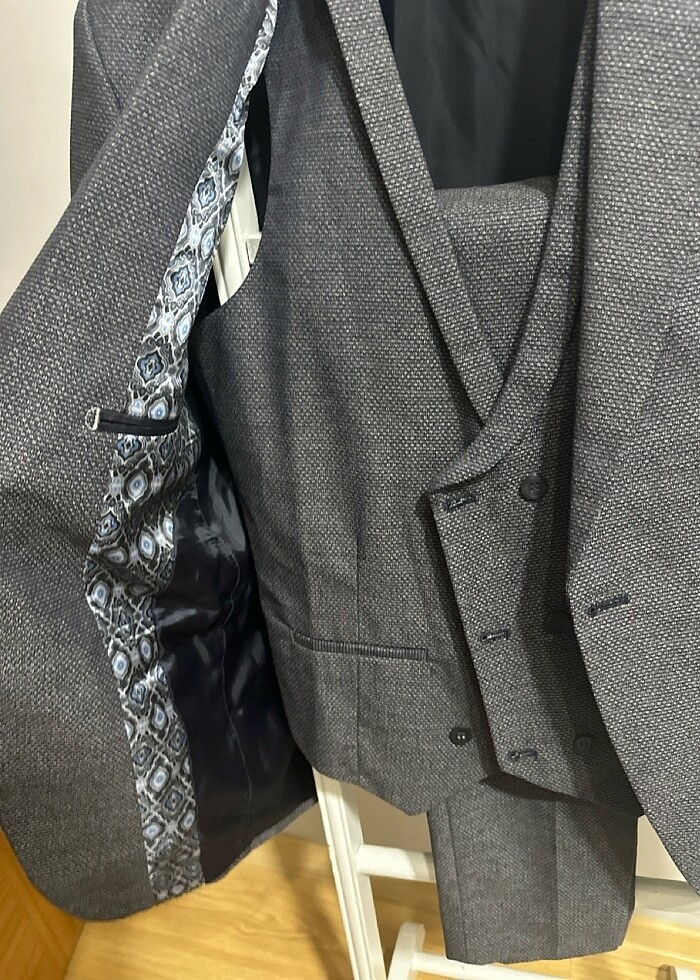 Sadece 1 kez giyildi küçük geldiği için satıyorum tertemiz. Pantolon, yelek, ceket