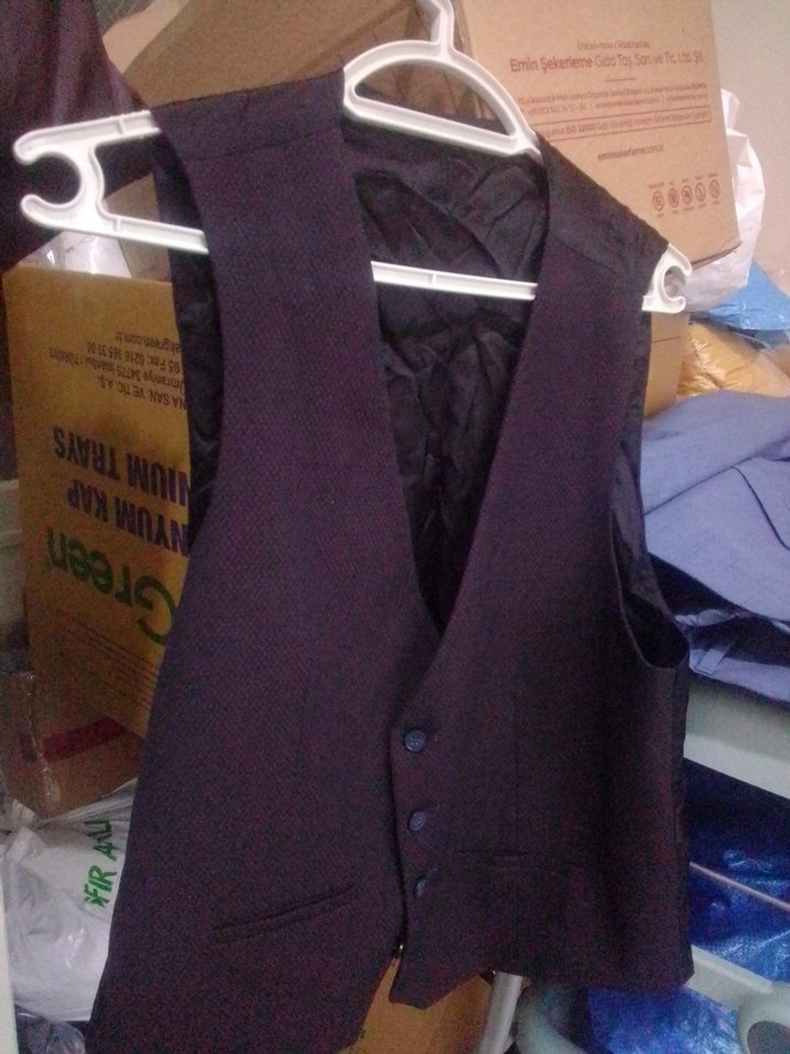 KURU TEMİZLEME YAPMADAN GİYMEYİNİZ.. İADE KABUL EDİLMİCEKTİR 1 GÜN GİYİLMİSTİR.... . Düğmeli, bordo renkli, kolsuz erkek yelek. Notch yaka ve sentetik kumaştan, normal kesim. Ofis ve sokak stiline uygun.