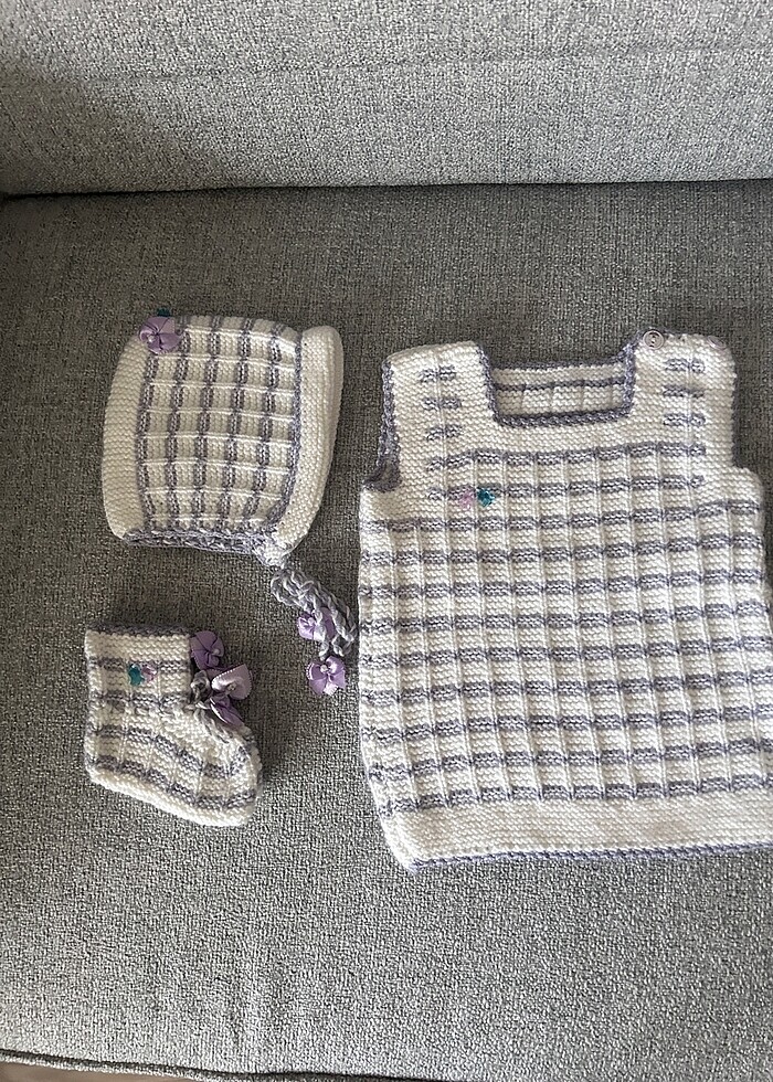 Takım örgü süveter şapka patik