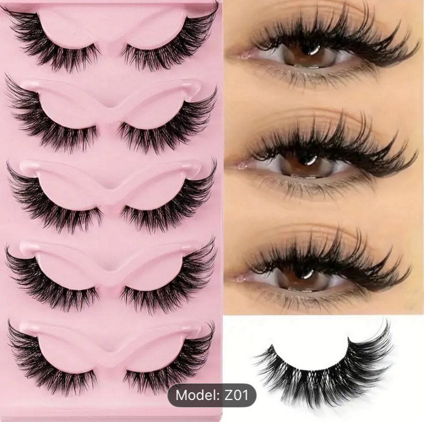 Pastel pembe kutuda Model Z01 takma kirpikler. Kalın ve hacimli kirpikler, gözlere dramatik bir görünüm kazandırır. ️
