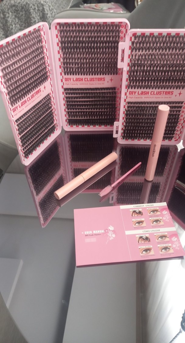 takma kirpikler, DIY küme tasarımı ve kolay kullanım için aplikatör içerir. Kullanım kılavuzu da dahildir.