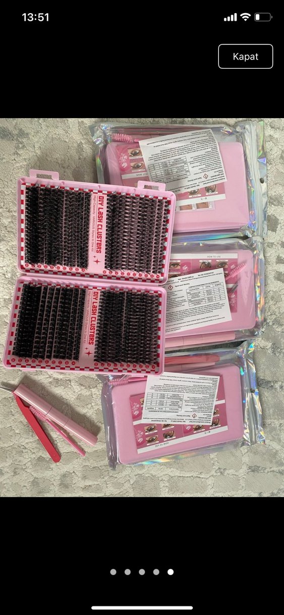 takma kirpikler ve DIY kirpik kümeleri seti, pembe aplikatör ve araçlarla birlikte gelir. Göz makyajını güçlendirmek için uygundur. ️