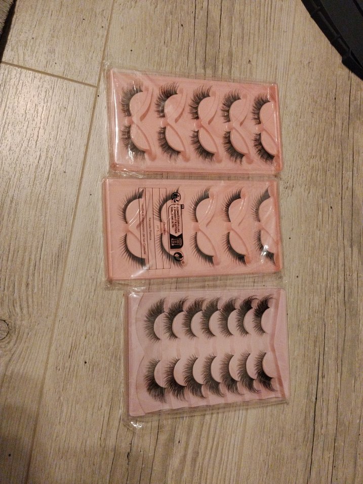 Açık tonlu bej renkli çoklu takma kirpik seti, göz görünümünü dolgunlaştırmak için uygun. ️