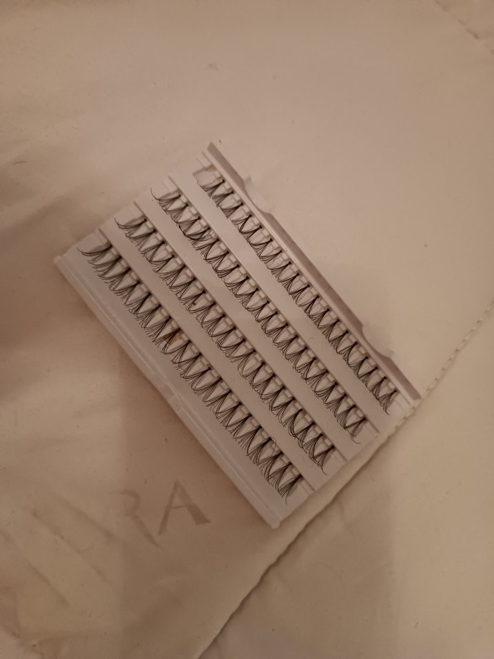 kolay uygulanabilir takma kirpik seti. Kirpikler düzenli şekilde sıralanmıştır. ️