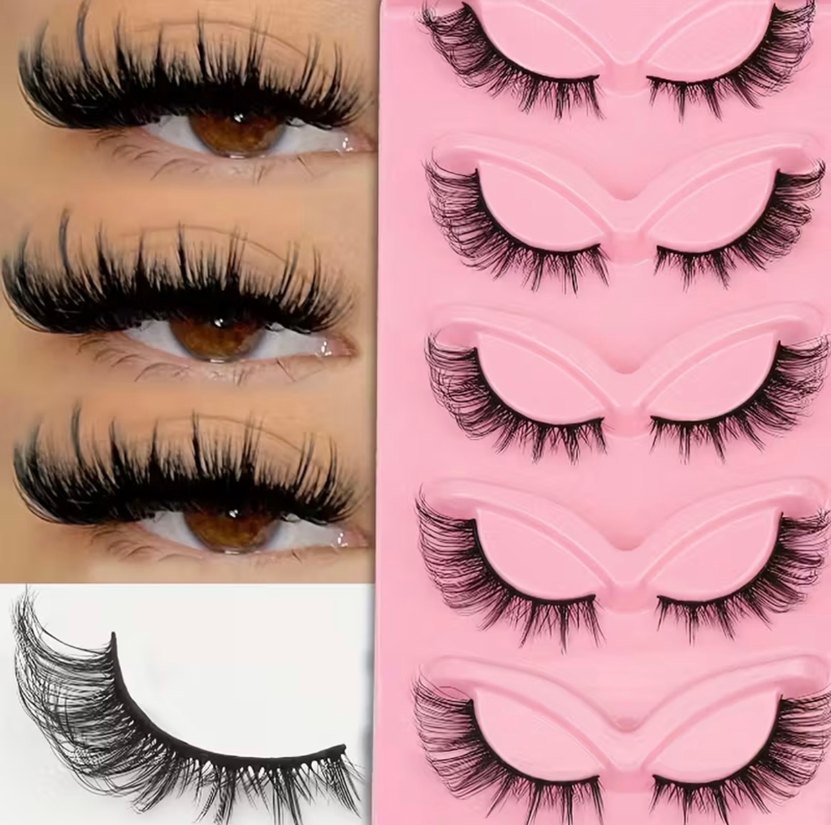 hacimli görünüm sağlayan takma kirpik seti, pembe tepside sunulmuştur.