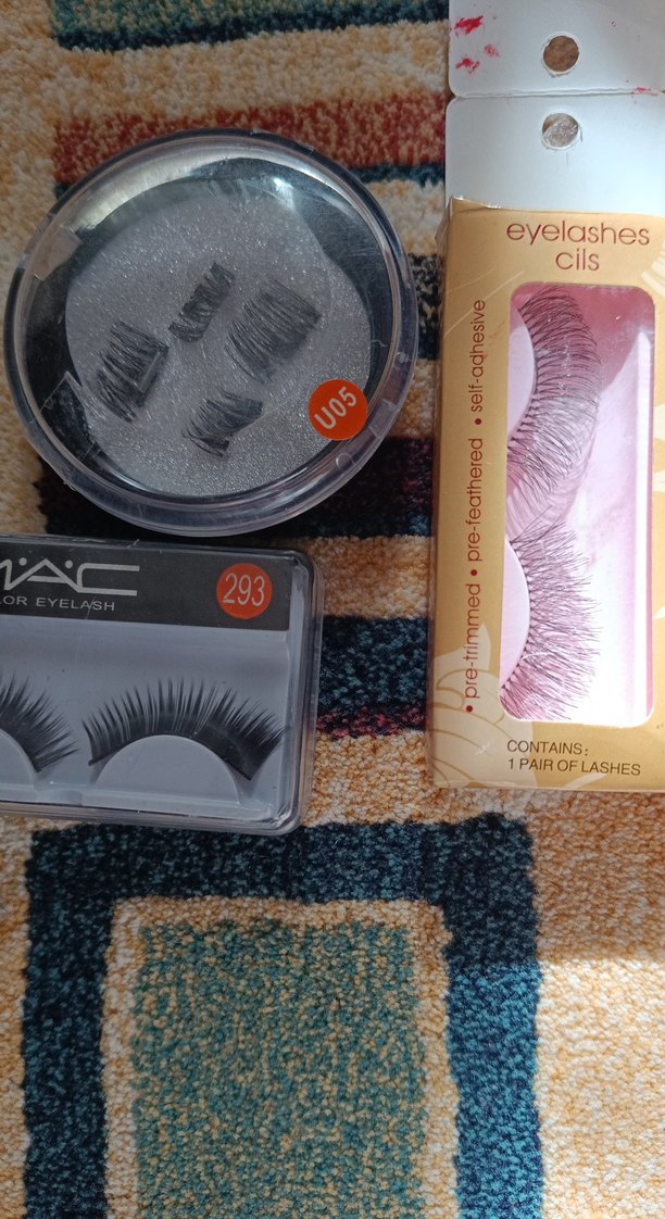 Farklı stillerde takma kirpikler, önceden ayarlanmış ve kendinden yapışkanlı seçeneklerle. Pakette bir çift bulunur. 1 çift mıknatıslı kirpik , bir çift klasik kirpik ve 1 çift dolgun ve uzun gösteren kirpik