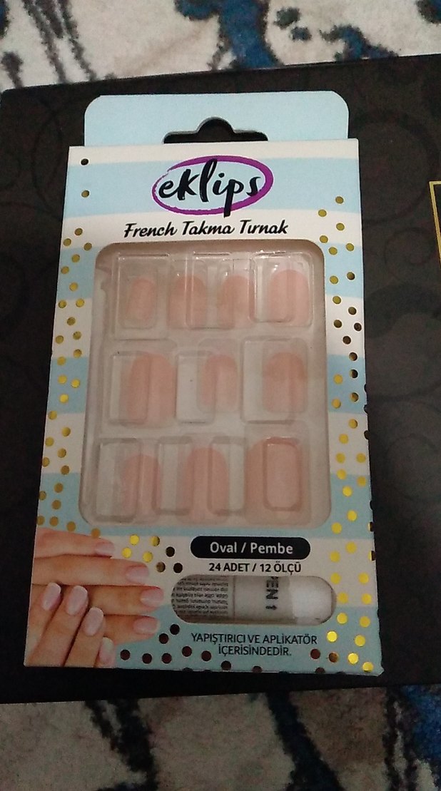 2 tanesi eksik onun dışında kullanmadım hiç ,göründüğü gibi Oval şekilli pastel pembe French takma tırnak, 24 adet ve 120 ölçü içerir. Yapıştırıcı ve aplikatör kutu içindedir.