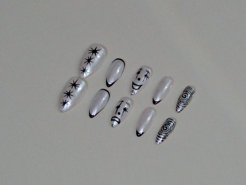 takma tırnak seti inci tozu ve kalıcı oje ile hazırlanmıştır