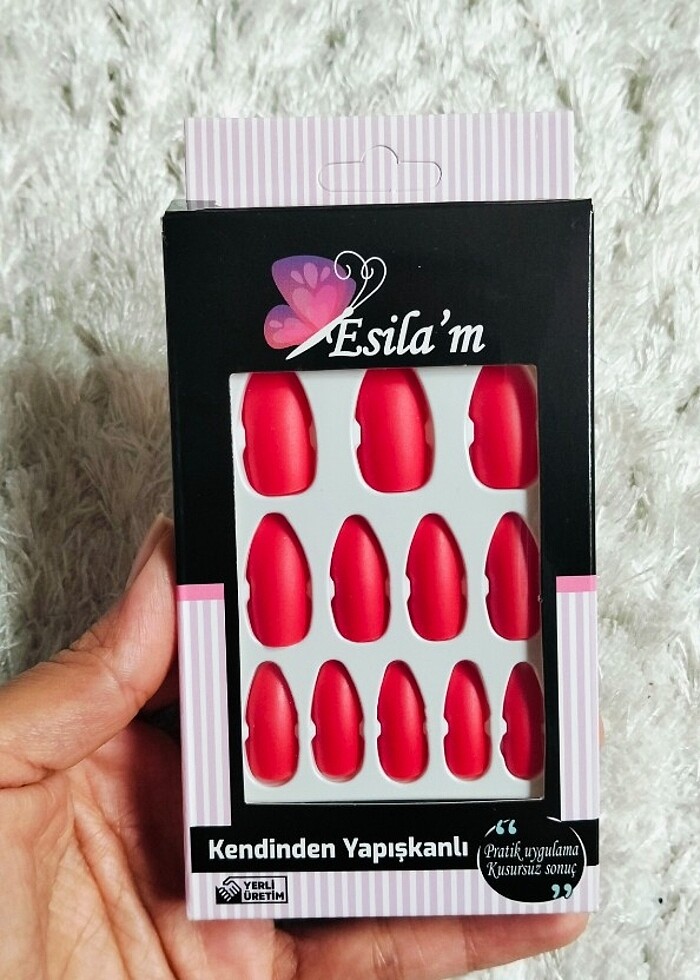 Kendinden yapışkanlı 12 parça takma tırnak ve içerisinde 12 parça sticker mevcuttur