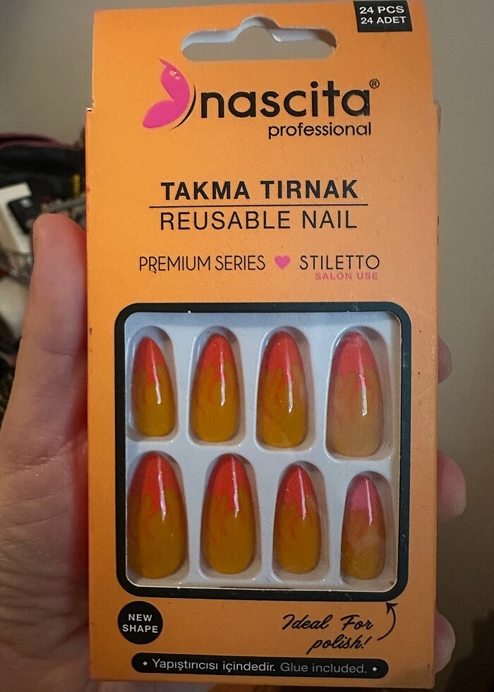 Takma Tırnak, Neon, Turuncu, yapıştırıcısı içinde, hiç açılmamış