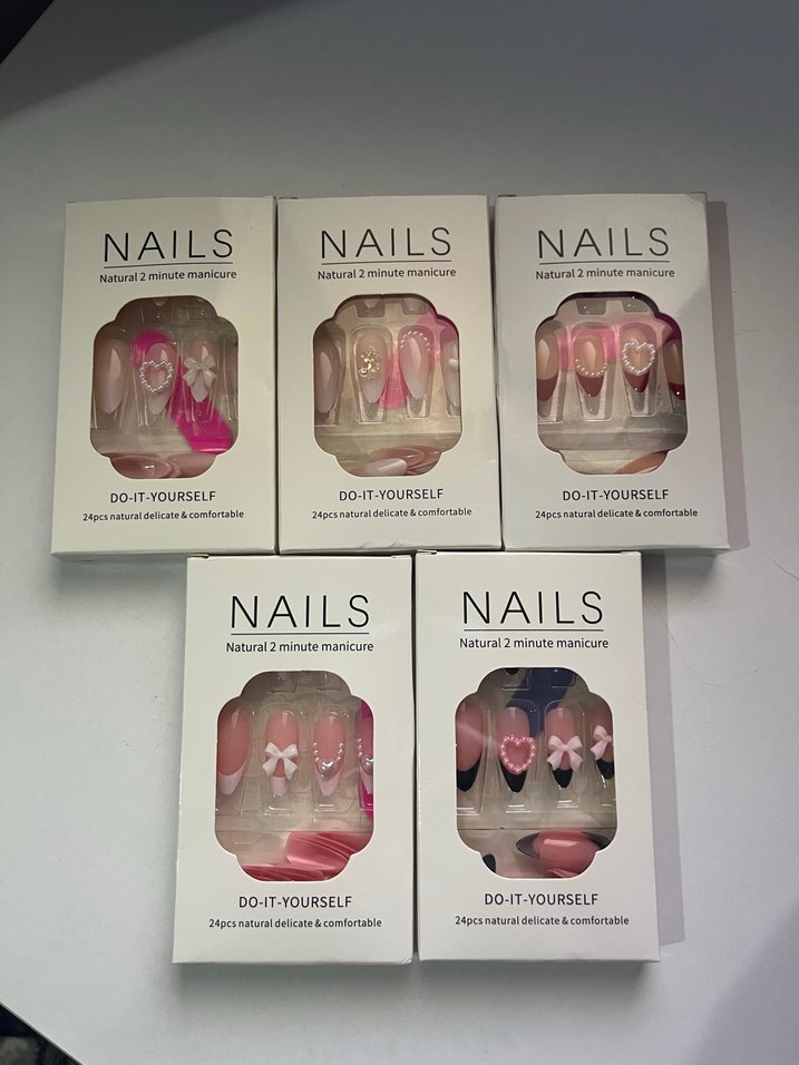 Pastel pembe tonlarda, doğal görünümlü 2 dakikalık manikür için 24 parçadan oluşan kendin yap tırnak süslemeleri seti. Rahat ve kolay kullanım sağlar.