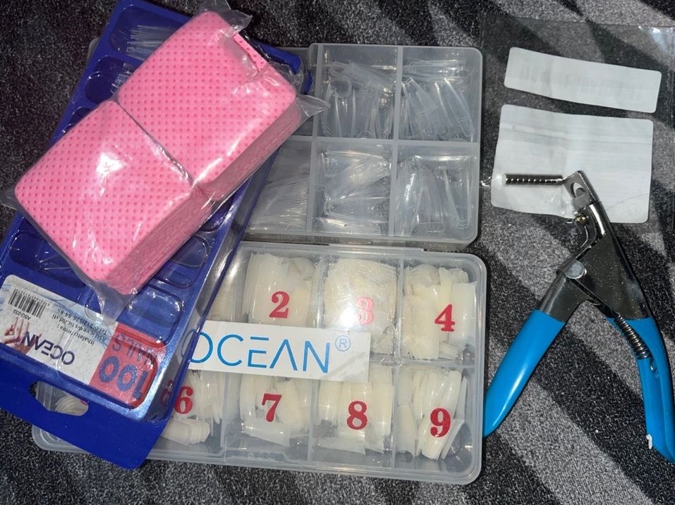 3 paket tırnak seti 1 tanesi yarım tips içerisinde kullanılanlar var ama çoğu duruyor tırnak kesme makası tırnak ölçü mıknatısı ve çoklu temizleme mendili var