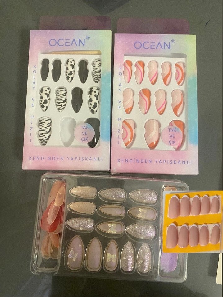 ilandaki her şey dahil, kargo boyutu büyümesin diye en sondaki görseldeki şekilde göndereceğim ürünleri. hiçbiri hiç kullanılmadı. ilk görseldeki siyahlı set de tam, boşluğa gelmesi gereken tırnak bir tanesinin içine geçmiş. !! BAŞTAKİ KELEBEKLİ PARILTILI SET S@TILDI !!