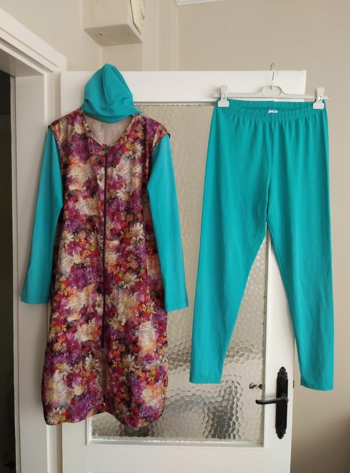 tam kapalı boneli kaliteli kumaş çabuk kuruyor sayılı kullanıldı tertemiz @haşema takımı @haşema @marka @tesettür @armine @tekbir @tatil @deniz PAZARLIK PAYI VARDIR