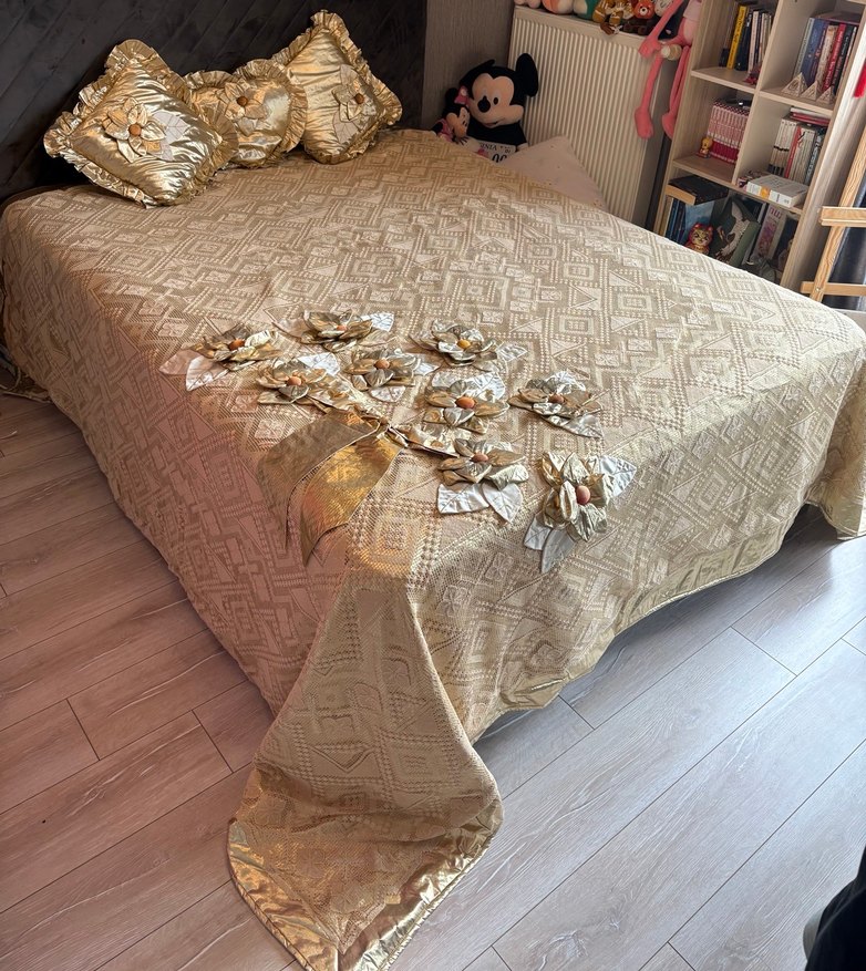 Tamemen elişi dantel yatak örtüsü