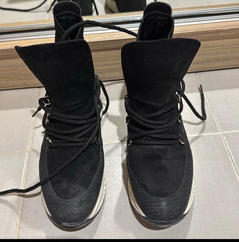 Siyah süet malzemeden, sim detaylı ve bağcıklı tasarıma sahip, spor ayakkabı. Streetwear ve athleisure tarzını birleştirir. Sadece bir kaç kez giydim.