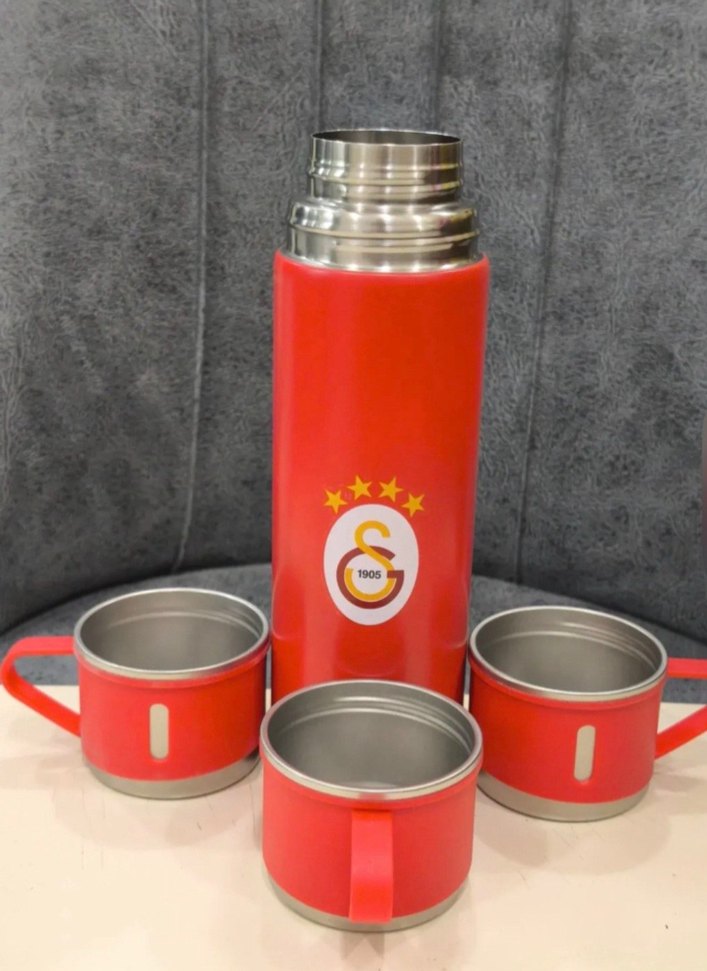 Galatasaray Fenerbahçe Beşiktaş Trabzonspor logosu bulunan üç adet uyumlu bardaktan oluşan renkli set, içecekleri sıcak tutar.