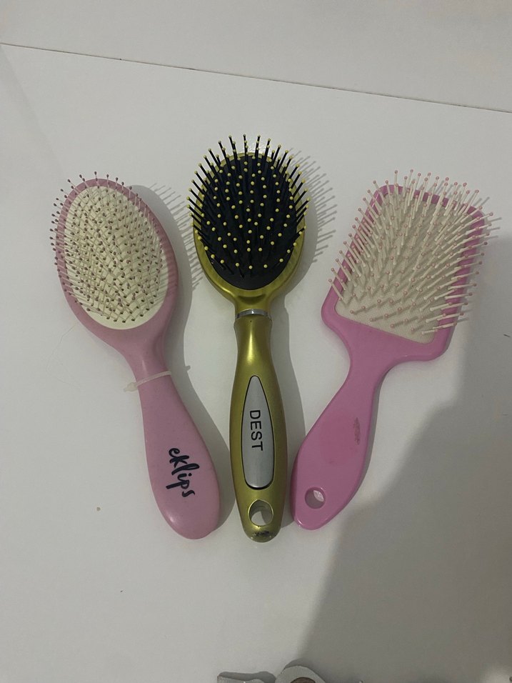 DEST ve Klips markalarından üç farklı şekle sahip saç fırçası seti, çeşitli saç şekillendirme için uygundur.