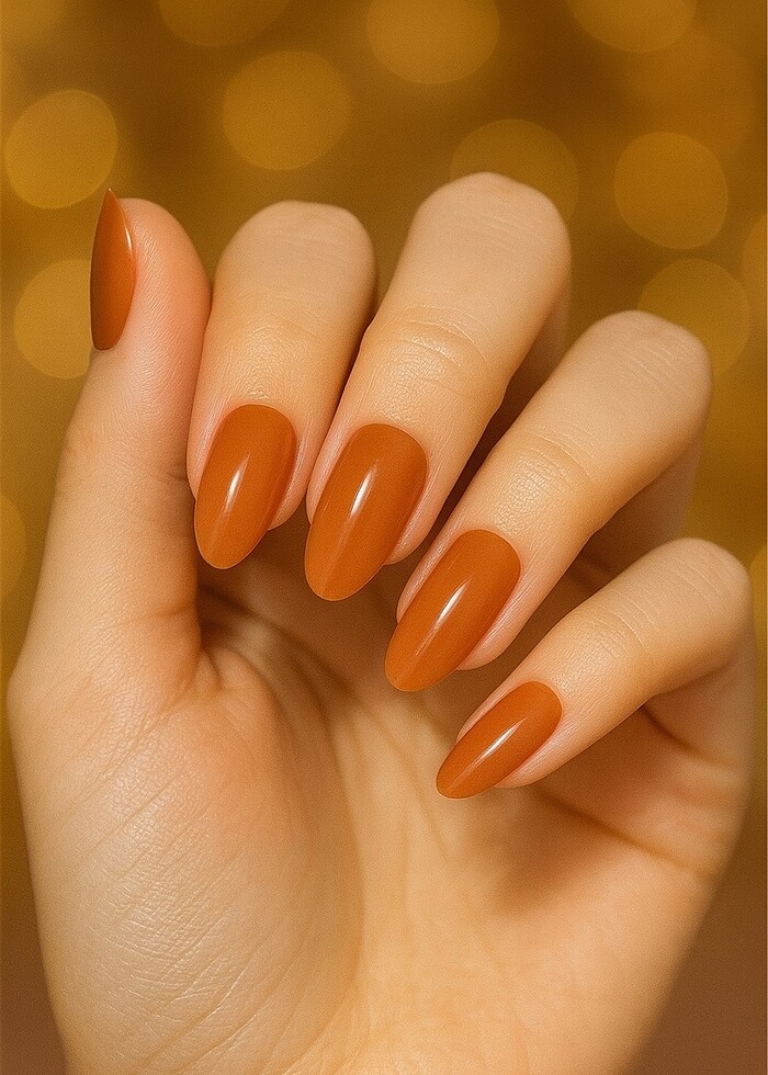 Sonbaharın en trend tonu tarçın rengiyle tasarlanmış, badem formda, doğal ve parlak görünümlü takma tırnak seti! Günlük kullanımda da özel günlerde de zarif bir görünüm sunar. Tak-çık konforu sayesinde saniyeler içinde profesyonel manikür efekti yaratır. ✅ Hafif ve rahat kullanım ✅ Doğal parlak görünüm ✅ Dayanıklı malzeme ✅ Badem form – parmakları daha uzun ve zarif gösterir ✅ Günlük kullanım & özel günler için ideal