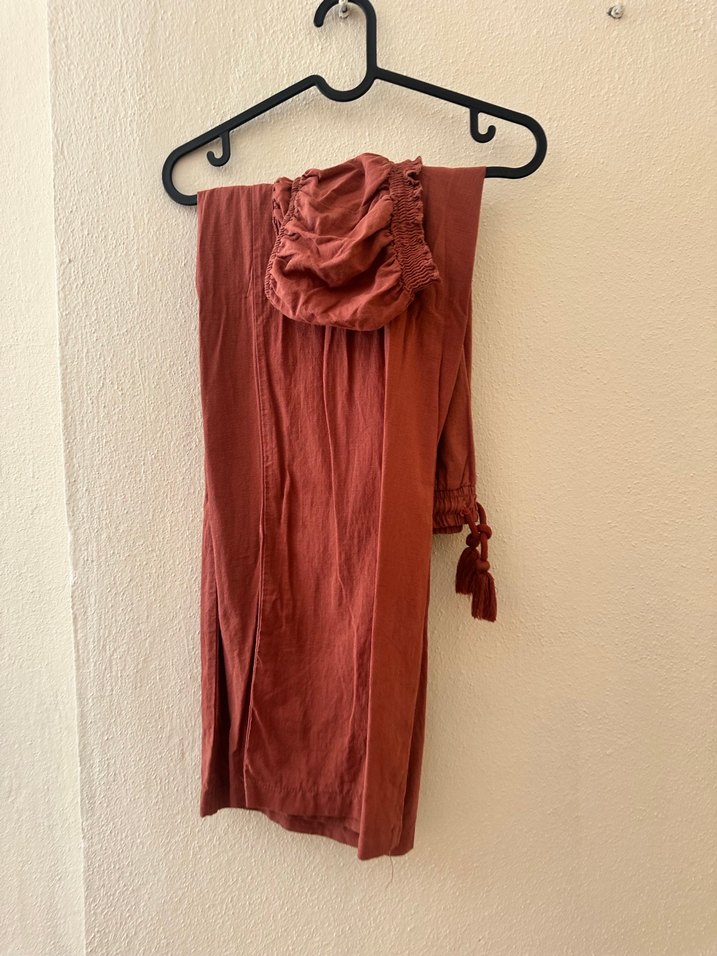 Tarçın Bol Kesim Keten Bohem Pantolon ve straplez