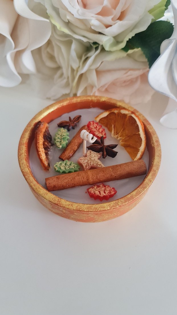Tarçın kokulu,sonbahar esintisi konseptli mum, sıcak ve samimi bir ortam yaratır.Tüm ürünlerimin satış geliri hasta kedim Leo’nun tedavisine aktarılacaktır. @demicanledesing