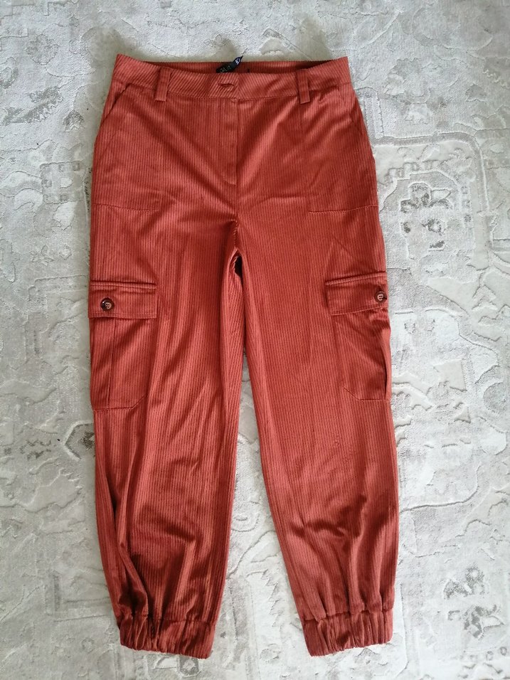 Etiketi yok ama hiç giyilmedi sıfır kargo pantolon. Lastikli paçalar, günlük rahat kullanım için uygun ve rahat. 40/42 beden uyumlu.
