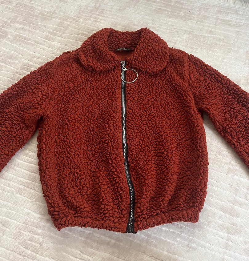 Bu dar kesim kadın hırkası, uzun kollu ve kısa boydadır. Yumuşak, sıcak tutan bir hırkadır, tarçın renkte ve önden fermuarlıdır. Günlük kullanıma uygun, rahat sokak stili görünümünde.