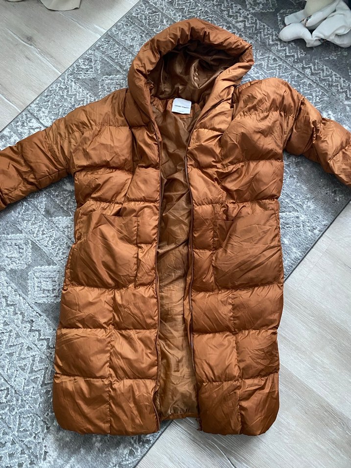 Kahverengi uzun kışlık mont, kürk detaylı ve kesimli yakaya sahip. Sentetik kumaştan, sokak stiline uygun ve gençlere hitap eder. ❄️