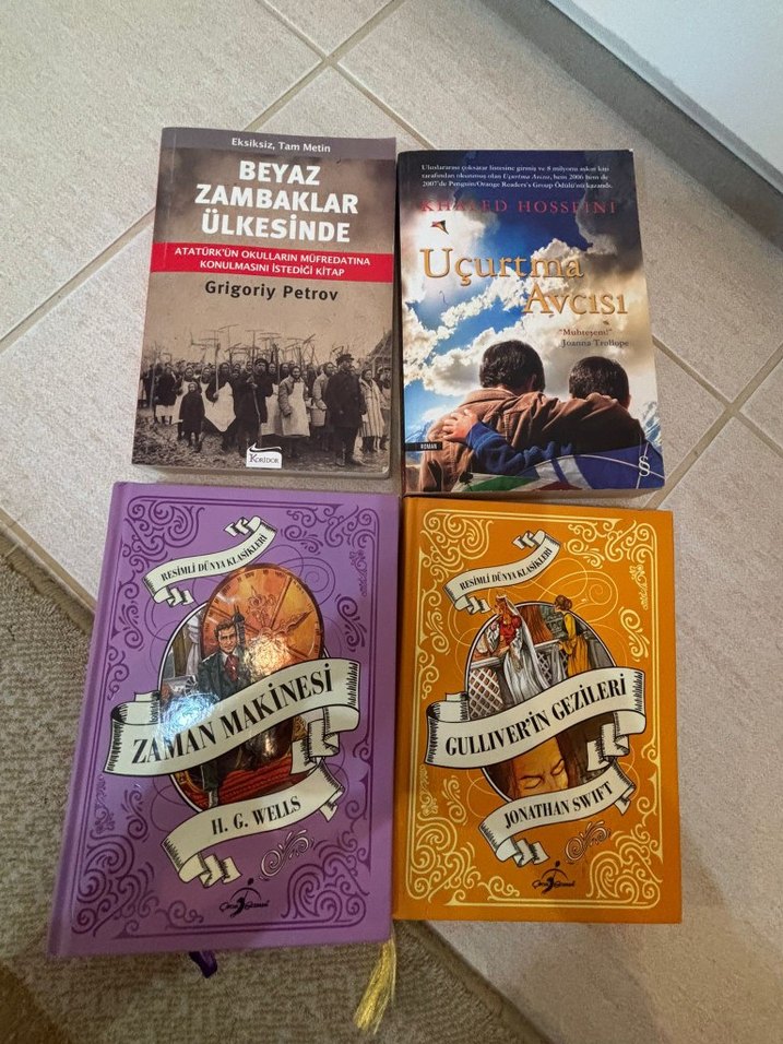 Bu set, Grigoriy Petrov'dan 'Beyaz Zambaklar Ülkesinde', H.G. Wells'den 'Zaman Makinesi', Jonathan Swift'ten 'Gulliver'in Gezileri' ve 'Uçurtma Avcısı' kitaplarını içerir.